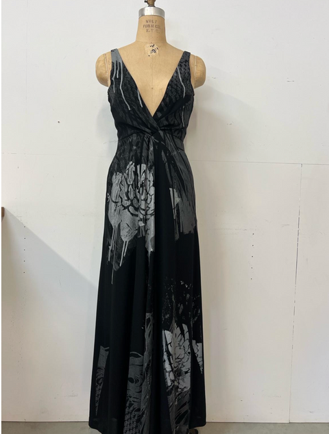 Simon Ungless - Black Crepe Dress with Shades of Silver Dripping Rose